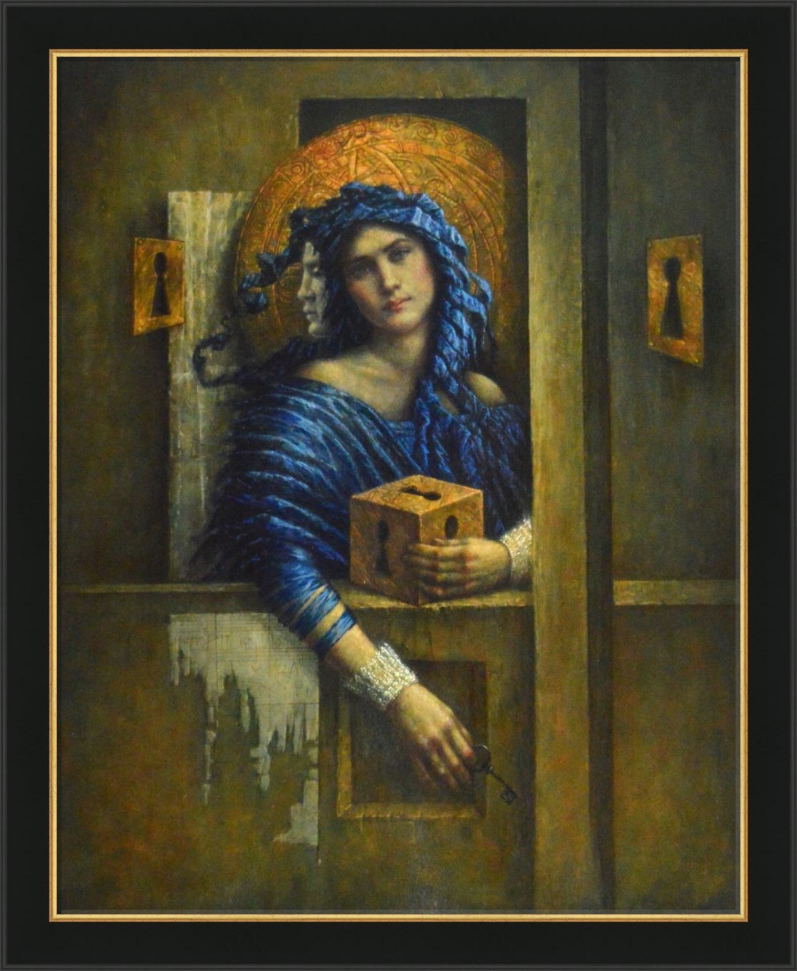 Out of the Box is an original oil painting on wood panel of 80 x 60 cm and was painted in 2020 in the Old Master’s technique. Only one available.